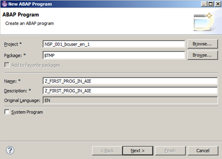 This is how I created my first ABAP report in Eclipse. I opened File -> New -> ABAP project